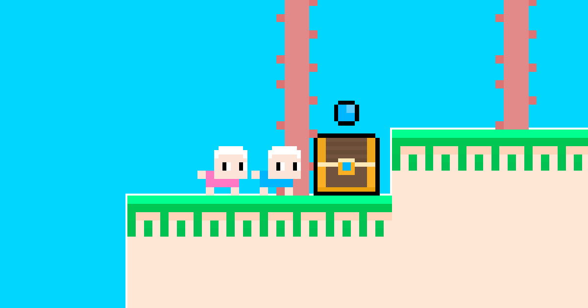 Two siblings are embarking on a journey to become young pirates, and you should partake in the escapade as well. The young buccaneers are on a quest to discover treasure chests and gather riches in my honor. Each sibling is in pursuit of distinct gems and chests located on the island, thus they must systematically uncover the chests that are theirs. The primary guideline of being a pirate is to gather everything available on the island, including every coin. Upon collecting all items, a concealed pirate vessel will suddenly materialize in the upper right section of the island. Board that ship and flee from the island.