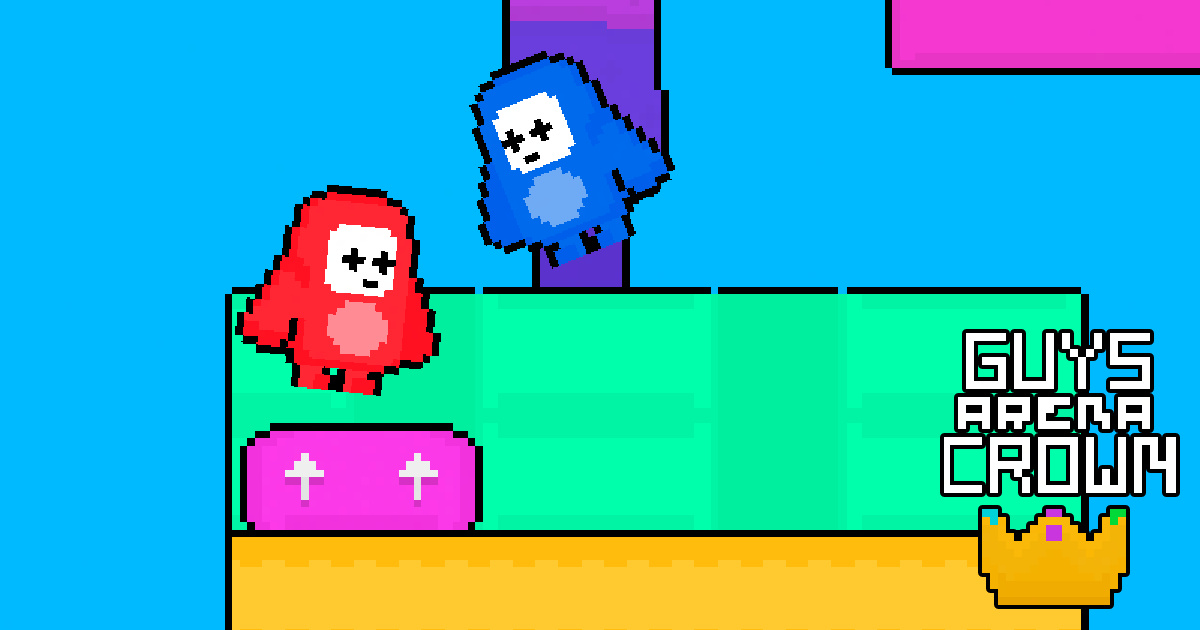 In the ultimate match of the Guys series, you are tasked with gathering all the crowns. Snatch the crowns with the airborne helicopter and transport them to the finish line. The player who accumulates the crowns in the shortest amount of time emerges victorious. Watch out for falling off the platform; doing so means defeat. Challenge your friend and may the finest player prevail. Stay vigilant, collect all the crowns swiftly. Gather every crown to claim victory.