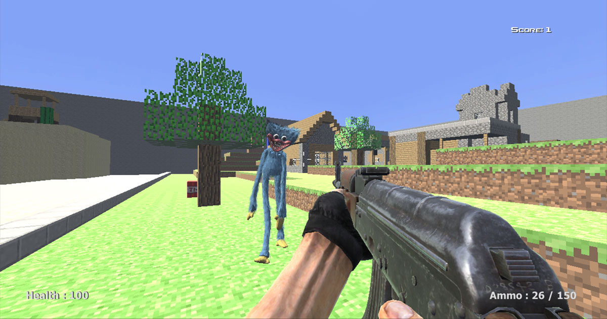 Poppy Strike 2 boasts a vast collection of armaments and a Minecraft-inspired landscape where your objective is to eliminate every approaching huggy wuggy doll and strive to endure through each wave to achieve victory and gain access to new firearms.
