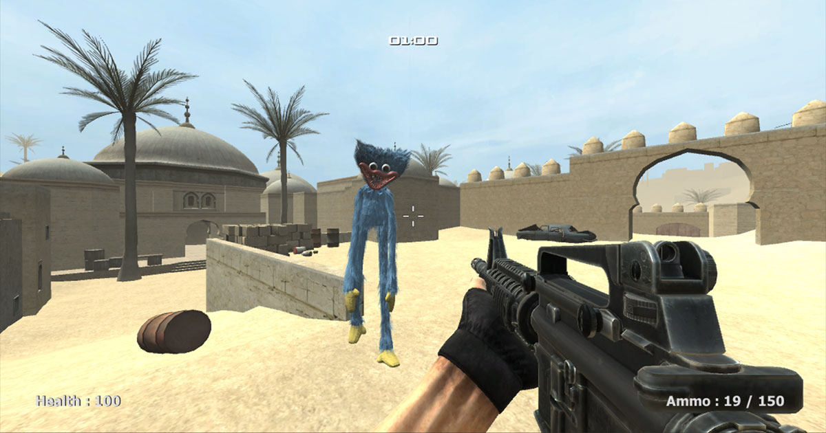 Poppy Strike is a three-dimensional shooting game that includes a gun game mode with an extensive collection of firearms and the well-known Dust 2 map filled with huggy wuggy. Your objective is to eliminate all approaching huggy wuggy and strive to endure until the conclusion of each round to acquire new weapons.