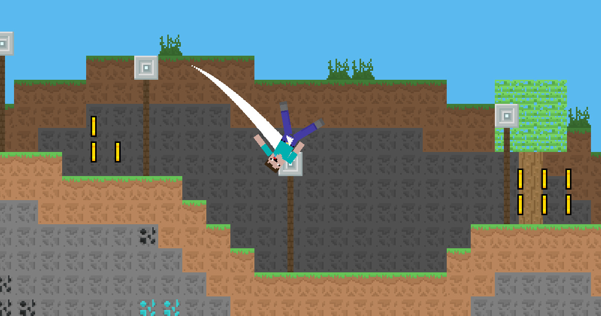 hey novice now you can soar from location to location by tossing a net. Exercise caution, avoid landing on the ground or you will perish, hazardous terrain can take your life at any time. net and leap. Be cautious, there are perilous spinning blades and pointed wooden spikes all around you must not come into contact with them. gather the gold as you progress and accumulate the highest amount of gold.