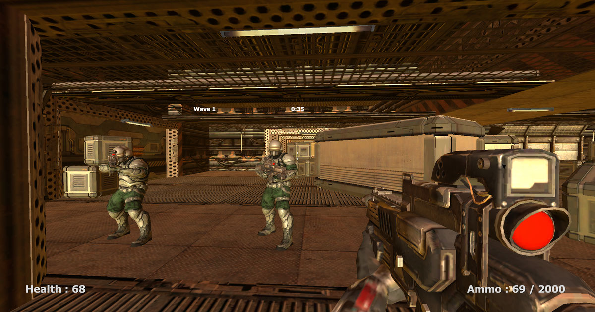You are a top-tier space soldier, and your objective is to penetrate a Martian bioweapon research center and utilize your formidable assault rifle to eliminate countless security personnel. Be cautious not to overheat your firearm in order to maintain precision and endure all oncoming enemy waves.